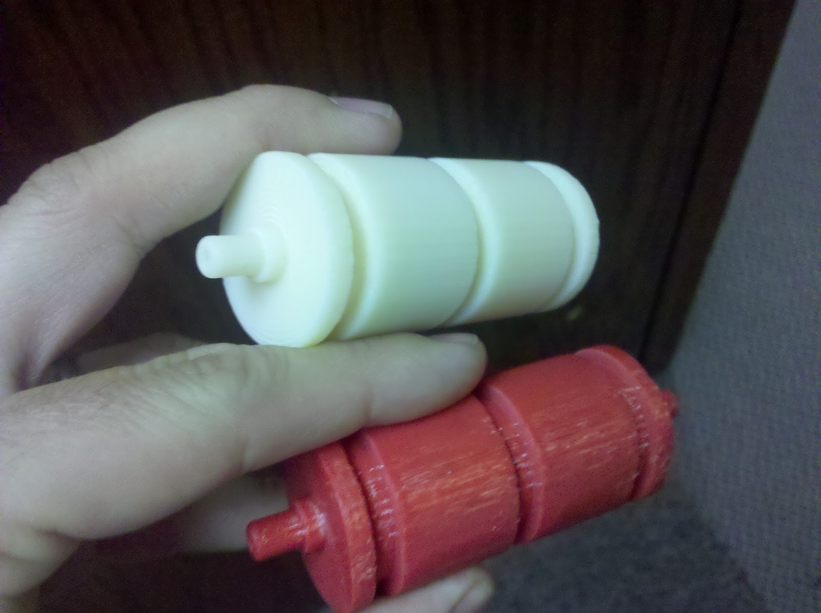 The Mojo’d part is white, the Replictor’d part is red. Side by side it’s pretty clear the print quality is comparable. In fact it seems like the layers are identical on the top. Same layer height, same stopping point. It’s like, math or something.