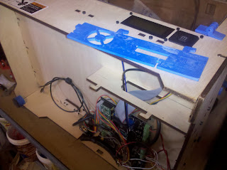 At this point I ran into problem #4. The placement of the fan mount in the new part ended up being closer to the wall than I realized. The flow would not be as good as I wanted with the air not being much directed over the circuit board. I’m thinking now a total redesign is the only option, but since I can’t print that replacement until I get this done, I have to press forward and hope I can still print when it’s over.