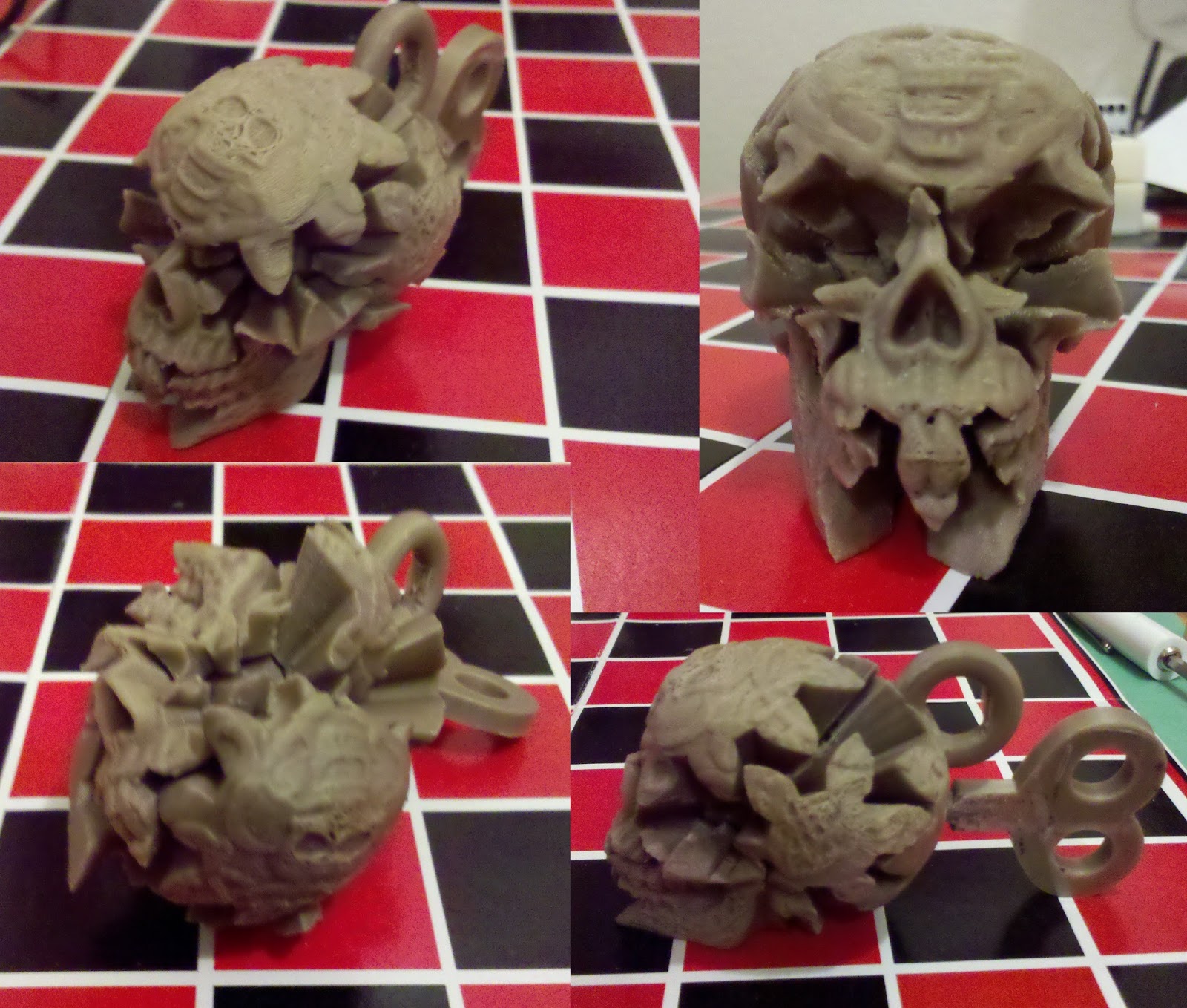 Started this what feels like months ago. May actually be months ago. I wanted a smaller version of the skull gears so to differentiate my version I use the Celtic Skull. This involved figuring out OpenSCAD, fixing an extremely non-manifold base model, and doing some modification. I love the idea of a key sticking out of the back of the skull, but this version reveals a lot of little changes I need to make.