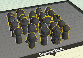 Here I’m plating some Doctor Who pawns and I’ve turned the all to face the back of the build platform. Since the seam will go across the front the seam will be hidden now where it won’t do any harm.