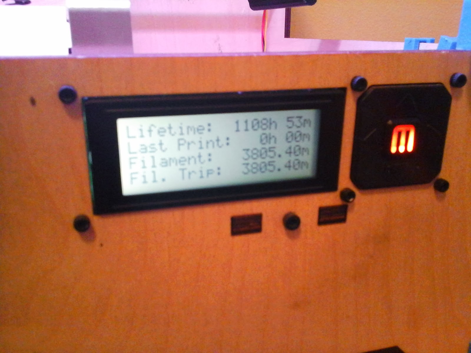 I’m pretty sure I had a board reset at one point, so the real number may be actually higher than that. The right LED behind the panel has just started going flaky, but the printer is otherwise functional and awesome and over 1000 print hours old.