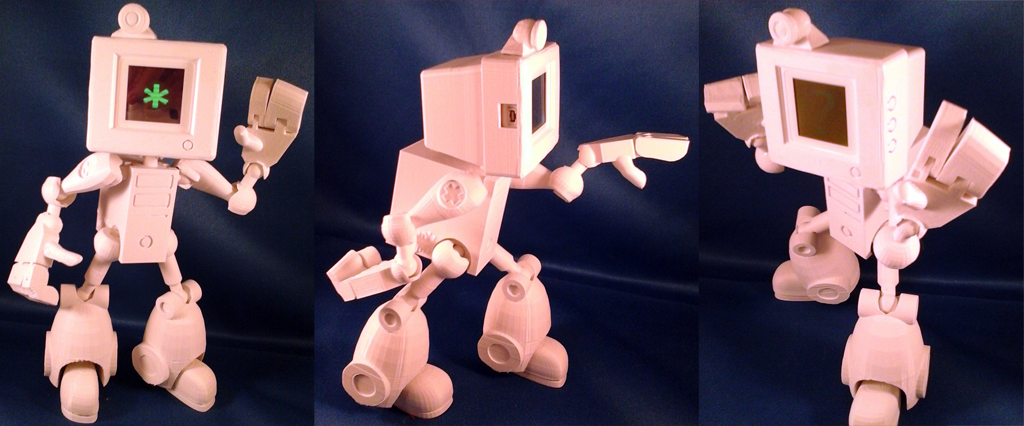 I am super excited to show off that Cymon, a character I created years ago as a mascot for my projects, is now a super posable toy with 17 points of articulation suitable to be a mascot for my 3D printed projects now, too. I’ve made the files available on CGTraider so you can make your own. Be warned, it’s a tall one. Of course yours won’t have the little LCD screen inside the head unless you can find one that fits. but besides that, totally Cymon.