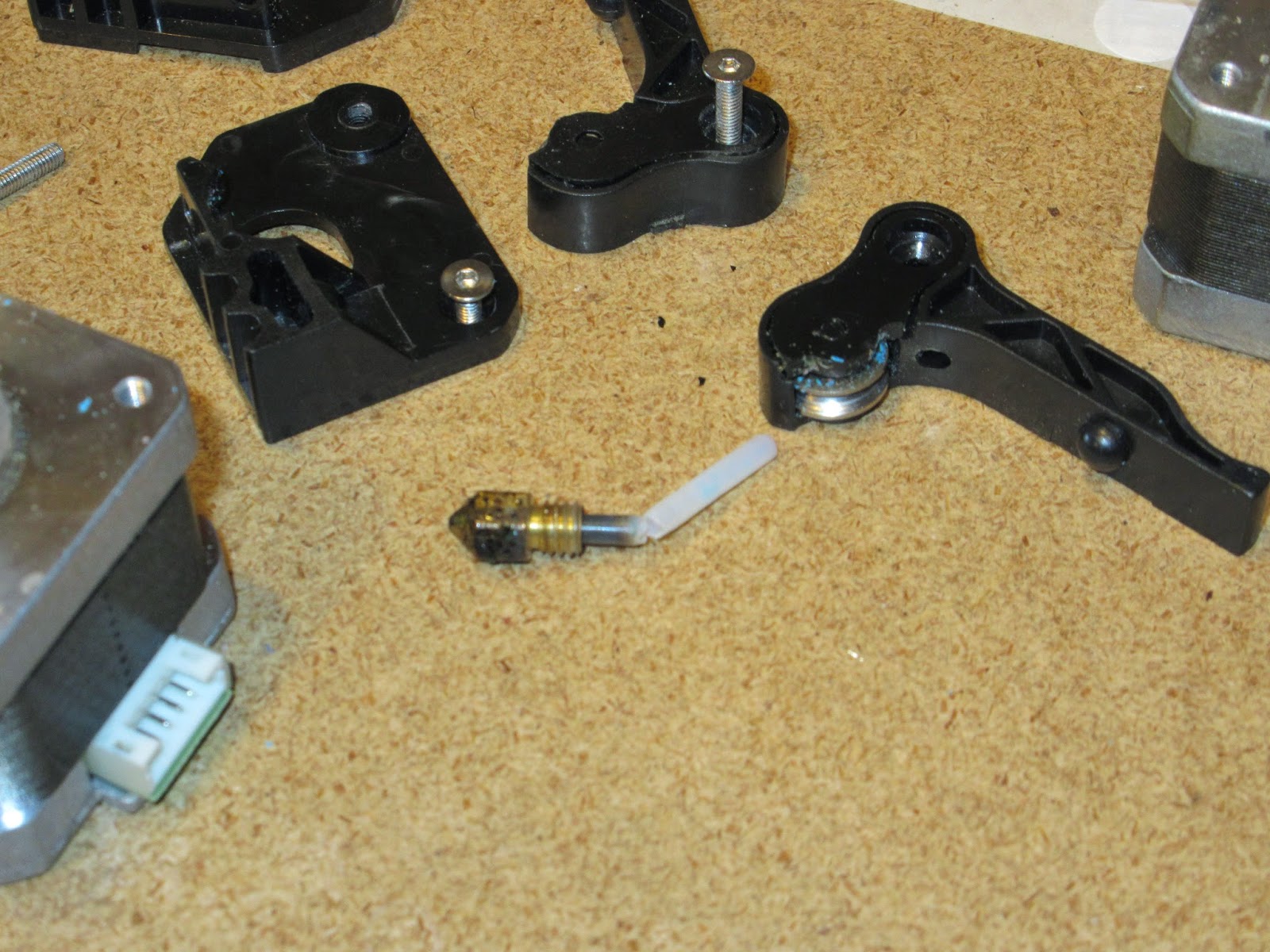 The clog I’ve seen before, but the PTFE tube was kinked and broken. There’s no moving parts there so I have no idea how that happened. Fortunately I had lots of spares, so it was no problem to replace it with the nozzle.