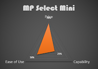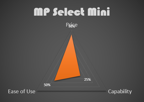 For example, the MP Select Mini, a $200 3D printer with a small build space but heated bed and actually better than expected user interface gets a graph a little like this one. It’s ease of use is a little higher than the standard printer built on open source technology, and the price is great, but it’s small size and the fact that it only really does PLA out of the box causes it a hit in the capability. The MP Select, however, is mod-able to fix that option, but that would come at a hit to the price score.