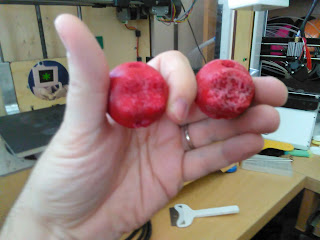 While printing the models that I modeled in the last video, the print I started in the video had to be canceled because the material I was using needed to be printed at a much higher temperature, I assumed because it had been mislabeled ABS. But after printing it there were still a lot of problems that I started cleaning up. Then it struck me, maybe this wasn’t ABS. Maybe it was a high temp PLA (I bought it at a clearance sale, so I can’t really be sure all the time). So experimentally I set up my jankey cooling system (because my printer didn’t come with one by default).