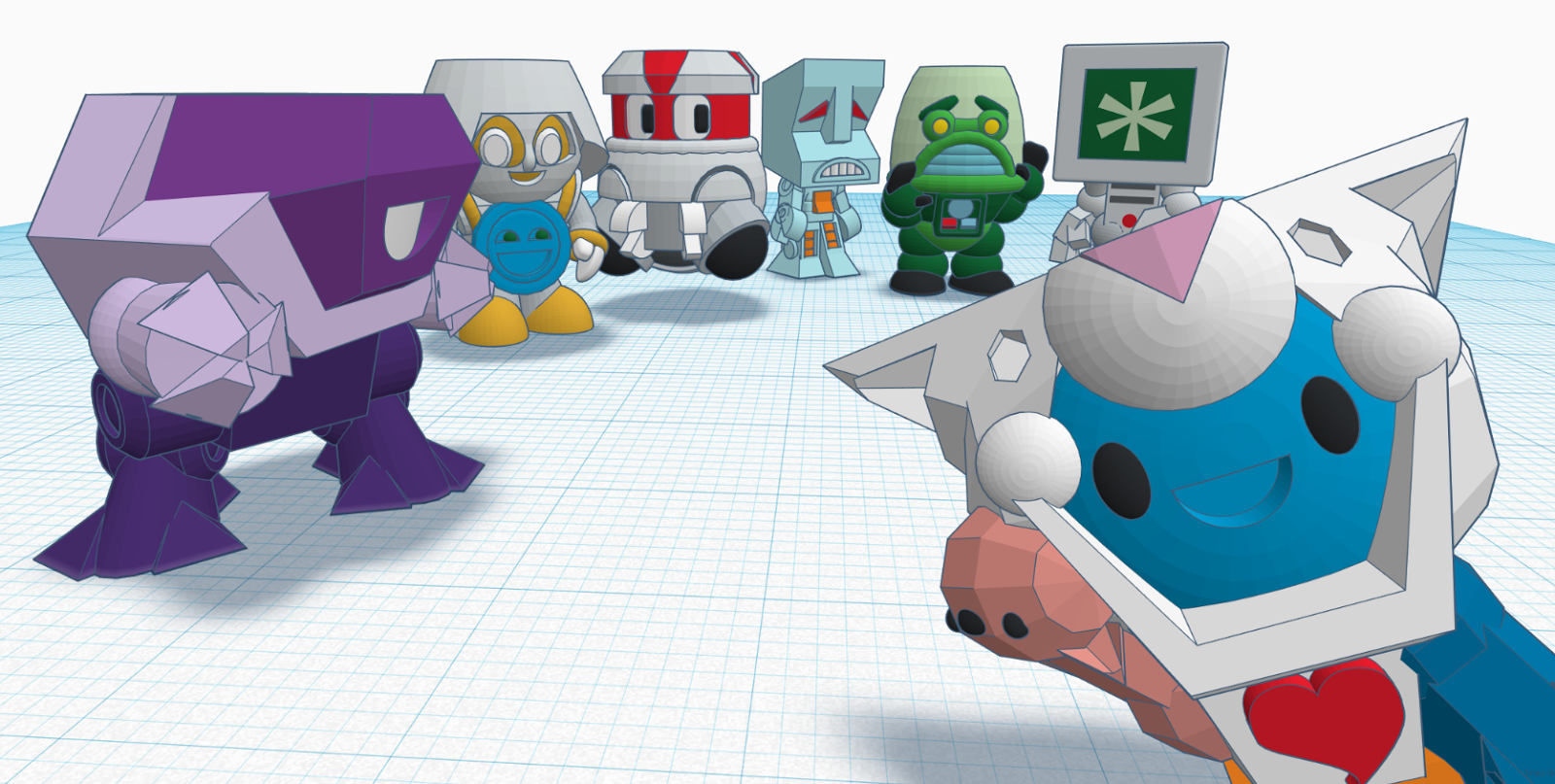 • Kittitron. Color: Pink, multicolor if you can. Inspiration: Voltron and Hello Kitty. Bio: Kittitron is actually 5 separate kitty robots that usually spend their time in what looks like lounging or resting, but what is actually advanced surveillance and charging their power cells. When danger threatens, they combine to form Kittitron, defender of the BotBlitz family. Quote: “Meow form the head.”