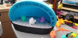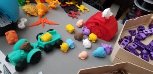 I set up a table to kinda of simulate what I wanted to show people at MRRF. Of course had I been at MRRF, it would have been a little more interactive with people being able to build with the printabloks. And I would have had time to get the Chibimals stage dancing. Maybe. Hopefully. Probably not, but I’m still blaming the plague for not being able to do it. See, the library didn’t send us all home, even though we closed the doors and stopped letting the public in. So we started doing inventory, which meant I had to change my hours to work with everyone else and I couldn’t play at the makerspace all day. And all because of stupid COVID-19!