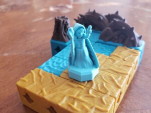 The next PrintAQuest expansion will take place in a swamp, a bit like the fire swamp from the Princess Bride. It’s providing quite a challenge from the first set of brick walls where I had to worry about walls and corners and T-junctions and how the all interact, this one is much more freeform. but I still have to figure out what a 2 high and 2 wide wall will look like. This is allowing me to do trees and vines and all kinds of fun things. In addition, it will have 2 types of floor terrain, ground and water. I’m having to set those up so the tokens can sit flat despite there being a lot of verticality in their textures. Plus, gameplay, I’ve now got to write rules for walking through water, making players have to decide if they’re going to walk through water, or around it. It’s being quite the interesting challenge and I’m enjoying it.
