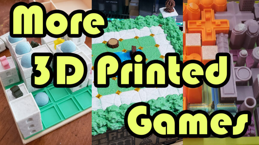 Watch on YouTube In this edition of 3D printed board games, we have 3 games that could be 3D printed, or could just be built out of PrintABlok, the 3D printed building block system. Cathedral Board Game v2 by Corey or just buy it on Amazon (aff) Santorini Portable Game by McGybeer or buy it on Amazon (aff) Tak – …